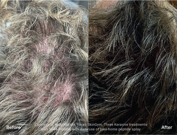 ⁴Based on perception of 44 participants receiving a series of 3 Hydrafacial Keravive treatments with daily application of take-home peptide spray in between treatments for 20 weeks.